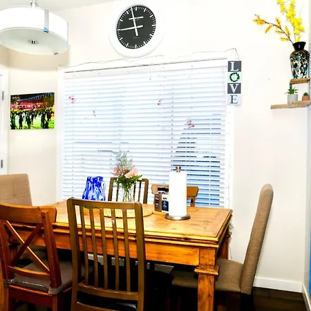 Willa Mahogany 3 Level Family Holiday Retreat With King Bed Ac Bbq oferuje pełnowymiarową kuchnię z ekspresem do kawy/herbaty, lodówką i piekarnikiem. Dom wakacyjny leży 37 min jazdy od lotniska Calgary.